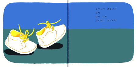 「くつくつ あるいた ぱた ぱた ぱた さんぽに おでかけ」あかちゃんがはく、やわらかそうで小さな靴がお出かけします。「とん とん とん」とつまさきで歩いたり、「ぴょん ぴょん」とジャンプしたり、優しい色彩で表情豊かに描かれた靴が歩き出しました。ジャンプしすぎて転んでも、「ひとりで おきるよ」とがんばります。靴をはいて、自分の足でよちよちと歩きだす喜びに満ちたあかちゃんにぴったりの絵本です。