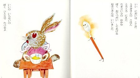 離乳食をはじめた頃のあかちゃんにピッタリな絵本です。なんでも自分でやりたいうさぎさんにおかゆを食べるお手伝いをしにきてくれたおさじさん(スプーン)のお話しです。詩のような松谷みよ子さんの文と、やさしい絵が大変心地よいです。松谷みよ子 あかちゃんの本」の中の1冊です。
