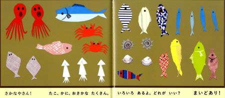 八百やさんには、なすや、ばなな。魚やさんには、たこや、かに。おかしやさんには、おだんごや、ケーキ……。いろいろなお店に、いろいろあるよ。「どれがいい?」という言葉に、あかちゃんが思わず手をのばします。「いらっしゃい!」「いらっしゃい!」子どもたちの元気な声が聞こえてきますよ。お店やさんごっこの導入にもぴったりです。