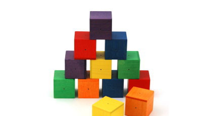 このおもちゃは4cm角の立方体が6色×2個ずつ、合計12個入っています。一つ一つの立方体の中にそれぞれ音色の違う鈴が入っていて、振ると小さい穴からかわいい音が聞こえてきます。最初のうちはこの立方体を振ったり、転がしたりして遊びます。自分がした行動に音色という結果が返ってくるので赤ちゃんはとても喜び、何度も何度も転がすでしょう。手先が使えるように発達してくると積木として遊べます。1つ1つが4cm角と大きく、まだ手先のつたない赤ちゃんでもつかみやすいように設計されています。赤ちゃんが初めて出会う積木としては最適なおもちゃです。