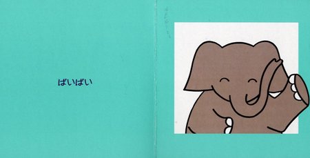 ひよこが「こんにちは」、「ばいばい」。ぞうさんが、うさぎさんが、きりんさんが、かえるさんが登場します。みんなニッコリ笑って、赤ちゃんに話しかけますよ。
