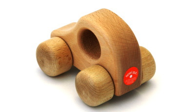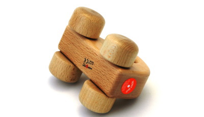 PKW(ペーカーベー)とは乗用車のことです。ドイツの老舗ケラー社の車のおもちゃを初めて見たときは本当に感動しました。デザインが良く、材質は堅牢なドイツのブナ材で、まるで子どもの手に吸いつくような握り心地で、絶妙な窓の位置は小さな指を支えてくれます。ひっくり返しても底の裏側まで丁寧に仕上げてあり、「ここまで子どものことを考えたおもちゃが日本にあるだろうか?」と感じたものです。デザインはとてもシンプルですが、一目見て車だとわかります。色違いに赤と青の車があります。同じケラー社の4人のりバスも日本では1984年より紹介されていて、人気の商品です。