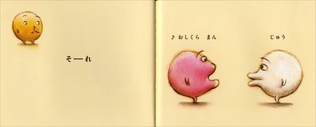 いたずら紅白まんじゅうが、おしくらまんじゅう。「そーれ おしくらまんじゅう」、「おされて ぎゅーぎゅーぎゅー おされて〜」…こんにゃく、なっとう、ゆうれいまで登場します。おされたみんなはどうなる〜?! ページをひらいて ひゃあ びっくり!