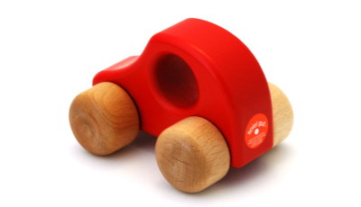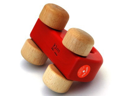 PKW(ペーカーベー)とは乗用車のことです。ドイツの老舗ケラー社の車のおもちゃを初めて見たときは本当に感動しました。デザインが良く、材質は堅牢なドイツのブナ材で、まるで子どもの手に吸いつくような握り心地で、絶妙な窓の位置は小さな指を支えてくれます。ひっくり返しても底の裏側まで丁寧に仕上げてあり、「ここまで子どものことを考えたおもちゃが日本にあるだろうか?」と感じたものです。デザインはとてもシンプルですが、一目見て車だとわかります。色違いに白木と青の車があります。同じケラー社の4人のりバスも日本では1984年より紹介されていて、人気の商品です。