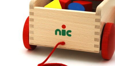 ニック社は、西ドイツのオーバーシュバーベン地方の中心地にある木製玩具メーカーです。もともとは商社でしたが、1991年に現在の経営者ヨゼフ・ヘルテンベルガー氏に変わった後、ドイツの木製玩具メーカーとして大きく成長しました。ニック社のもの作りの基盤となっているものは、子どもたちが繰り返し長くよく遊び、シンプルで堅牢なものであること。また素材は主にヨーロッパの森で育ったブナやカエデを使用し、すべての商品はヨーロッパの安全規格(CE)の基準をクリアしています。色付けは、無害な色素を使用し、水性ラッカーで仕上げています。堅牢な作りとデザインの美しさが高く評価され、1998年にドイツ玩具業組合の主催する「DEUTSCHER DESIGN PREIS」で第一位に選ばれました。