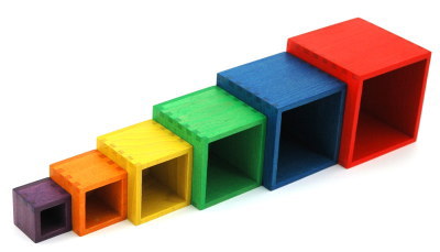 箱がすっぽりとおさまっていく気持ちよさ、積み上げる緊張感の両方が味わえます。小さな子どもにも遊びやすい軽さと大きさです。小さな子どもは、はめこんだり、入れたり出したりすることにとても興味を示し、何度も何度も繰り返し同じ事をして楽しみます。もちろん積み木として遊ぶこともできます。小さな子どものおもちゃはシンプルな方が、遊びが限定されることなくいろいろな工夫をしながら長く楽しむことができます。色は、木目が透ける程度の落ち着いた色彩で、遊び終わったらインテリアとして棚の上などに飾っておいても素敵です。