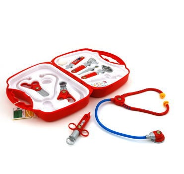 体温計、注射器、聴診器など10点、お医者さんの必需品がたくさん入っているので、お医者さん遊びに最適です。好奇心いっぱいの子どもは、ごっこ遊びによる他者とのコミュニケーションによって思いやりの心を育むことでしょう。