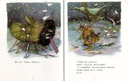 おじいさんが森の中に手袋を片方落としてしまいます。雪の上に落ちていた手袋にネズミが住みこみました。そこへ、カエルやウサギやキツネが次つぎやってきて、「わたしもいれて」「ぼくもいれて」と仲間入り。手袋はその度に少しずつ大きくなっていき、今にもはじけそう……。最後には大きなクマまでやって来ましたよ。手袋の中はもう満員! そこにおじいさんが手袋を探しにもどってきました。さあ、いったいどうなるのでしょうか?