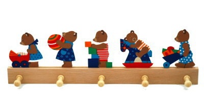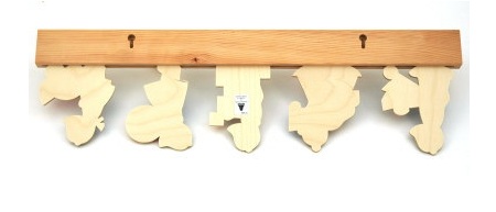 子ども部屋に、こんなかわいいコートラックはいかがでしょうか?お子さまの帽子や靴入れ、バックなど、荷物をかかけるフックは5ヶ所です。裏側に穴が2ヶ所あいていますので、壁にビスなどで簡単に固定できます。木製のあたたかさと、やさしい色調がお部屋を明るくします。
