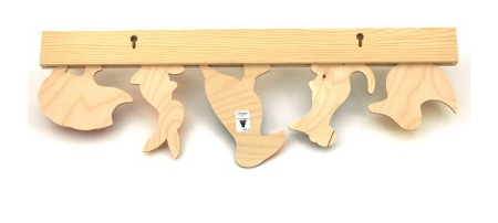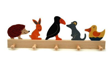 子ども部屋に、こんなかわいいコートラックはいかがでしょうか?お子さまの帽子や靴入れ、バックなど、荷物をかかけるフックは5ヶ所です。裏側に穴が2ヶ所あいていますので、壁にビスなどで簡単に固定できます。木製のあたたかさと、やさしい色調がお部屋を明るくします。