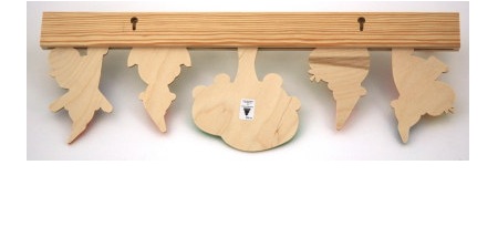 子ども部屋に、こんなかわいいコートラックはいかがでしょうか?お子さまの帽子や靴入れ、バックなど、荷物をかかけるフックは5ヶ所です。裏側に穴が2ヶ所あいていますので、壁にビスなどで簡単に固定できます。木製のあたたかさと、やさしい色調がお部屋を明るくします。