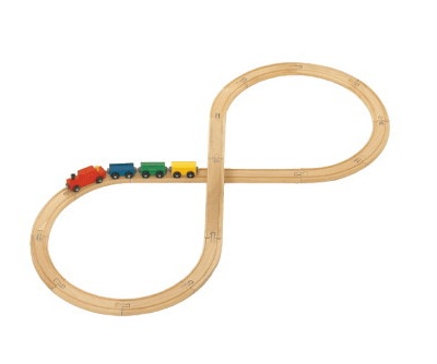 カラフルな4両の汽車とシンプルな「8の字」のレイアウトのセットです。汽車の連結部分は磁石で簡単に組み合わせが変えられます。レールのジョイントは着脱が可能で、子どもの扱いでも折れにくいプラスチック製です。ジョイントの場所を変える事で組み合わせの可能性が広がります。レールは両面使用可です。