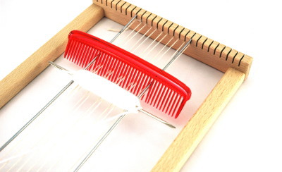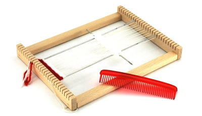 針で縫うように織ります。絵を描くように自由な柄をつくることができます。手間はかかりますが、布(織り)の原理に出会うことができます。ロッテで織れる出来上がりサイズは、W18×L24cmまでです。もっと大きなものや効率よく織りたい場合は、スージーがおすすめです。集中力や指先の器用さを養うだけでなく、出来上がった時の達成感はすばらしいものがあります。