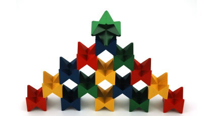 リボン型(蝶型)のような幾何学的デザインが特徴の積み木「ネフスピール」。縦積み、横積み、斜めバランス積みなど、四角や三角の積み木とはまた一味違った、子どもから大人まで幅広い年齢層にお楽しみいただける積み木のご紹介です。