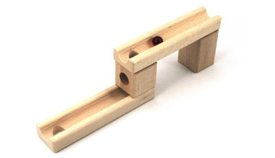 (図1)レールの溝は斜めに削られていますので、レール上に玉を置くだけでも玉は転がります。最初はこれだけでも遊べます。