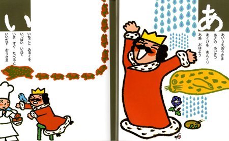 あいうえおうさま、あさの あいさつ。あくびを あんぐり、ああおはよう。愉快でちょっととぼけた王様があいうえお順に楽しいストーリーを展開していきます。文字と言葉を覚えはじめる子どもに最適です。表情豊かな王様に、大人も子どもも夢中になることでしょう。