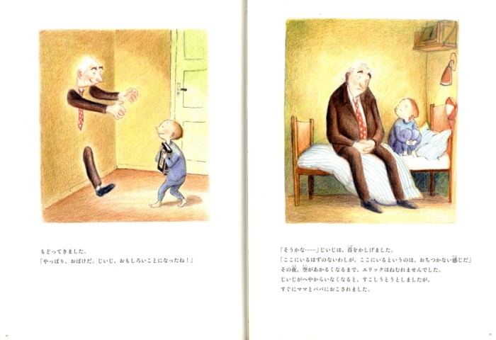 死んじゃったはずのじいじが、土にも天使にもならずに、なんとおばけになってエリックの前にあらわれた!『おばけの本』によると、「この世にわすれものがあると、人はおばけになる」って書いてある。じいじとエリックは「わすれもの」が何なのかさがしはじめますが…。心に沁みいるデンマークの傑作絵本。